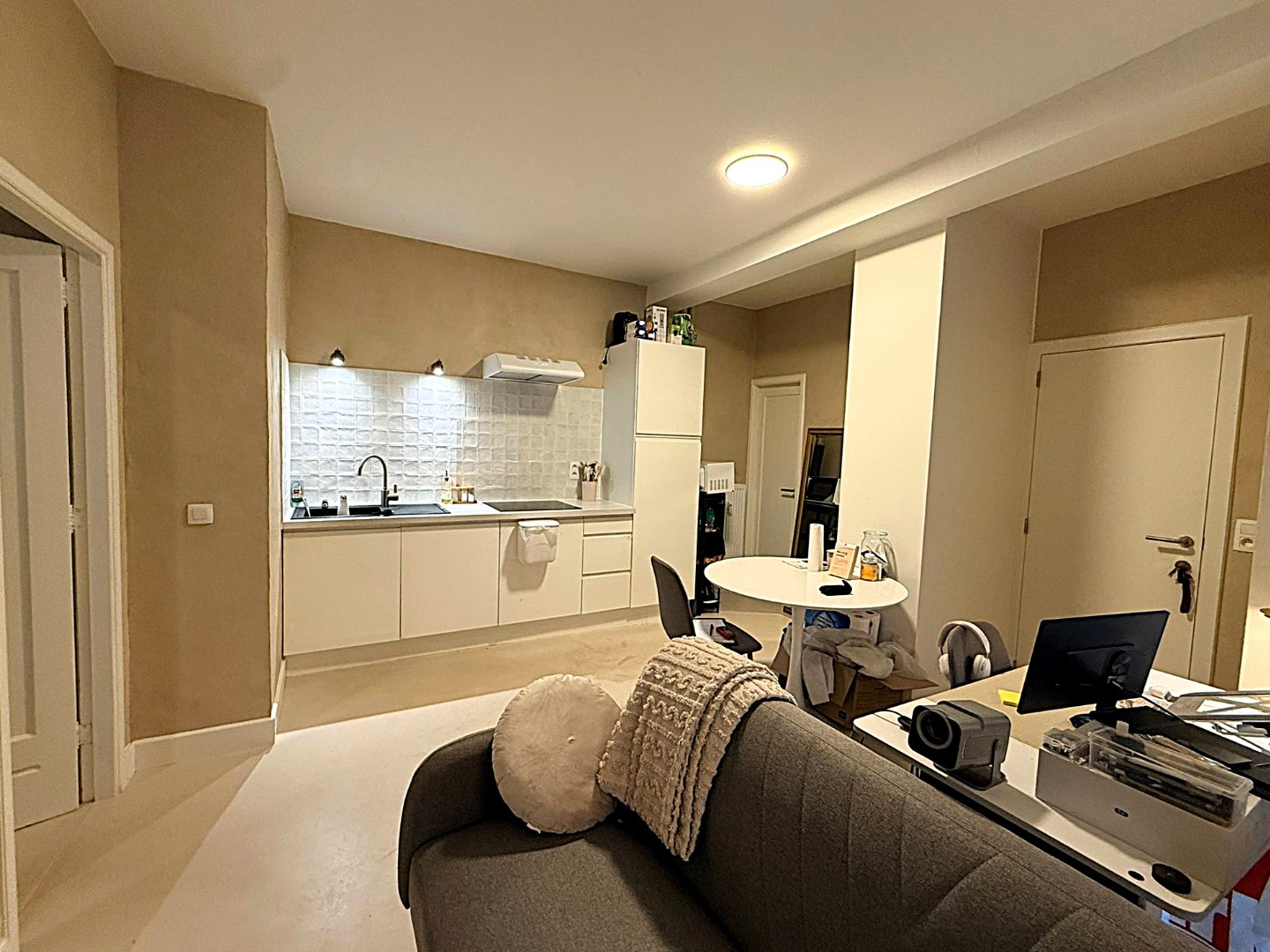 Lichtrijke leefruimte met open, volledig uitgeruste designkeuken voorzien van kwalitatieve toestellen, apart gastentoilet, volwaardige slaapkamer (ca. 10 m²) en een luxueus ingerichte badkamer met moderne inloopdouche.
