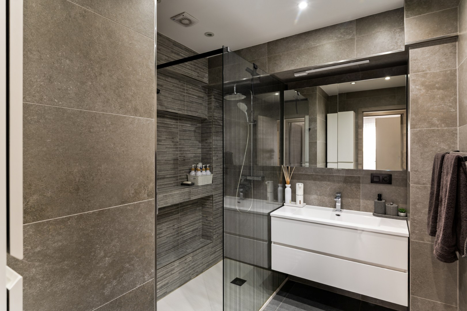 Via de nachthal, met een apart gastentoilet, bereikt u drie volwaardige slaapkamers, afgewerkt met een onderhoudsvriendelijke laminaatvloer. De badkamer werd smaakvol vernieuwd en is uitgerust met een inloopdouche en dubbel lavabomeubel.