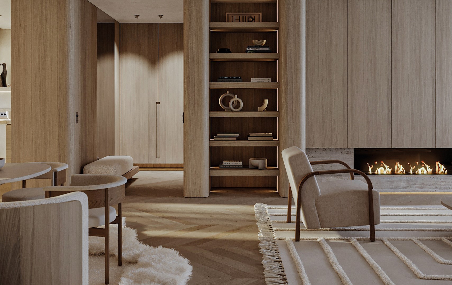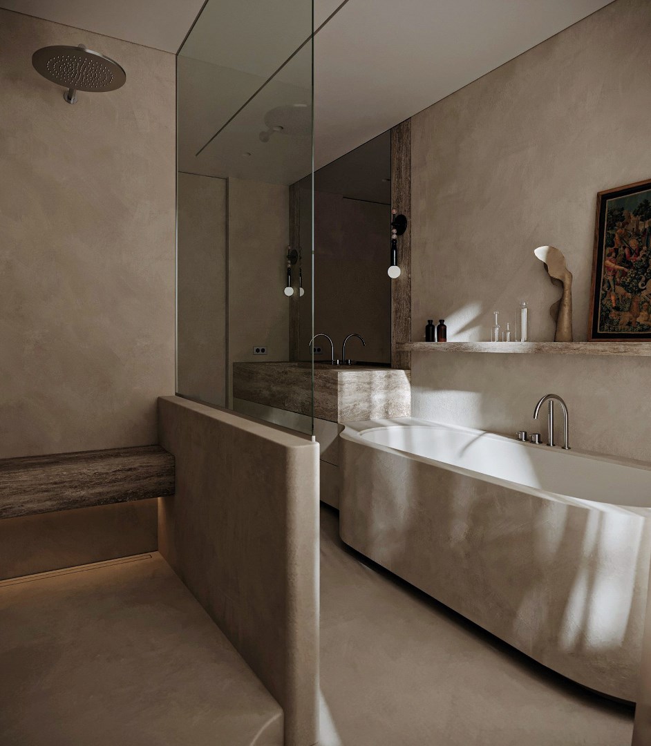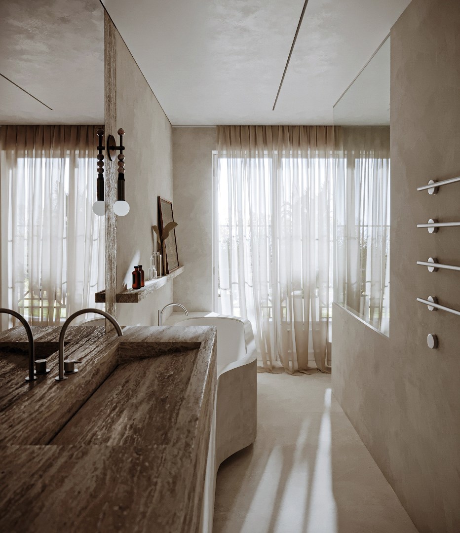 U wordt verwelkomd in de inkomhal, die leidt naar een royale leefruimte van ca. 64m², met grote raampartijen die toegang geven tot een terras. Hier kunt u in alle rust en privacy genieten van het zicht op de parktuin met vijver. De open keuken vormt een harmonieus geheel met de leefruimte. Verder is er een handige berging. De hal, met ruime vestiaire en gastentoilet, verdeelt de ruimte in twee royale slaapvertrekken met aansluitende terrassen. De ene master bedroom heeft een ensuite badkamer, voorzien van ligbad. De andere suite heeft een walk in dressing en een ruime badkamer met inloopdouche.