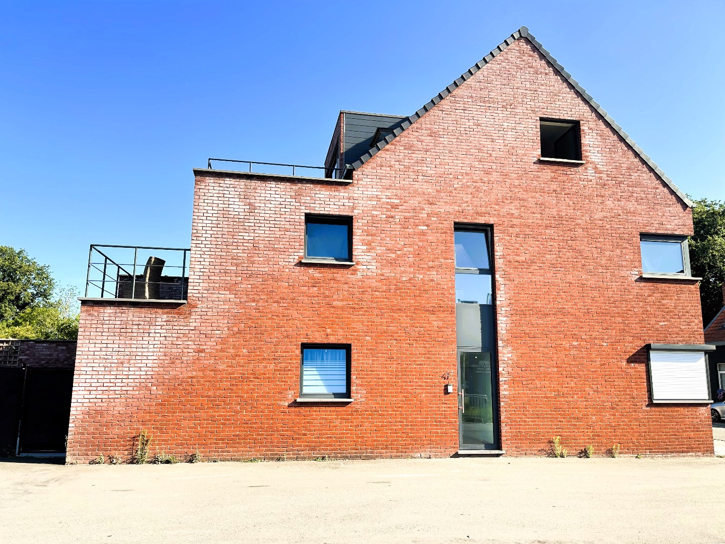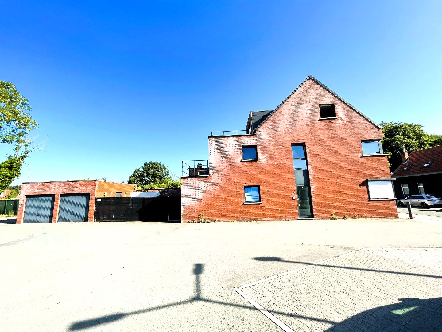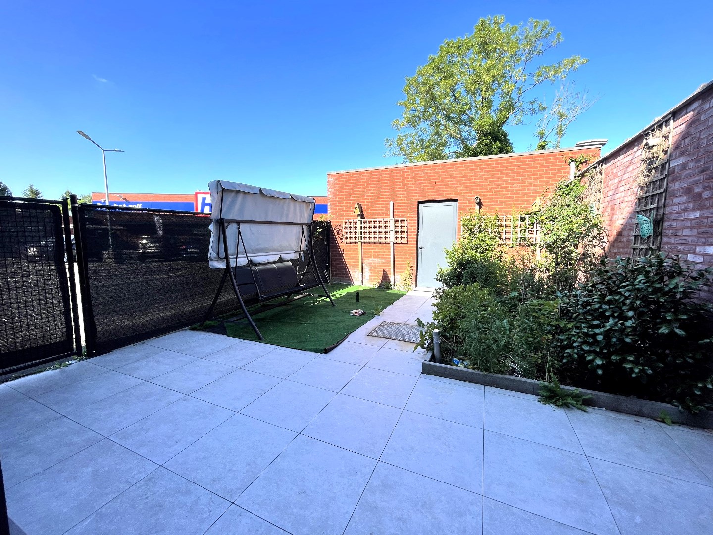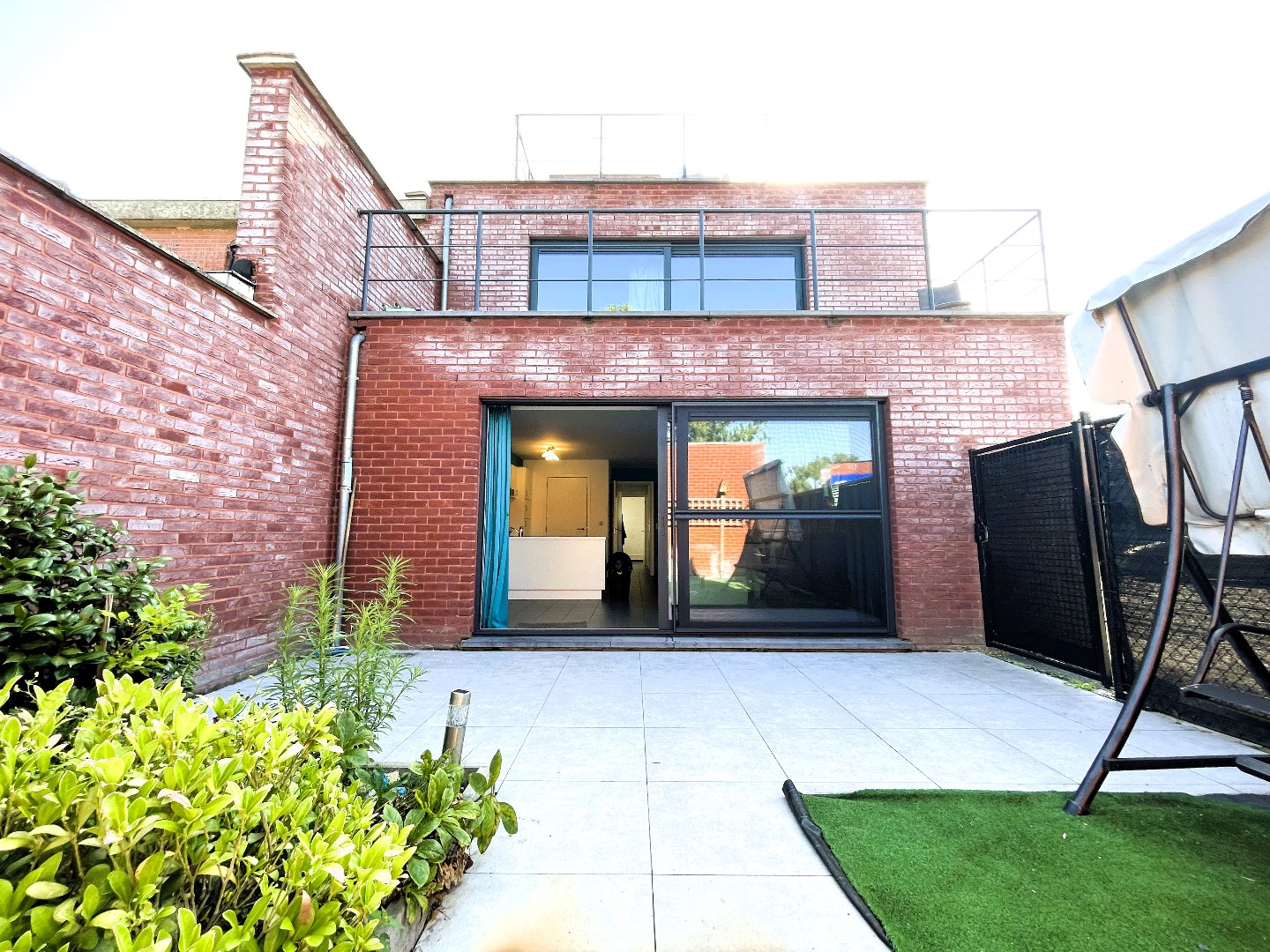 De zonnige tuin achteraan is voorzien van een groot terras met zijingang en een directe verbinding met de garagebox. Deze garage is tevens mee inbegrepen.