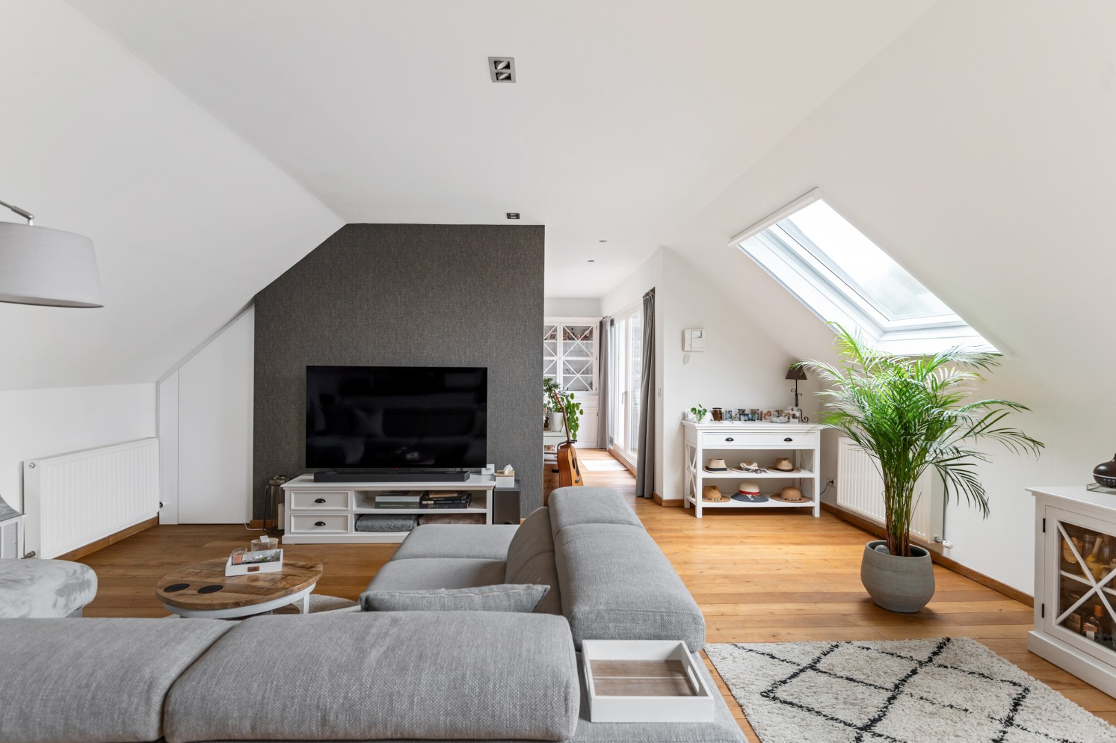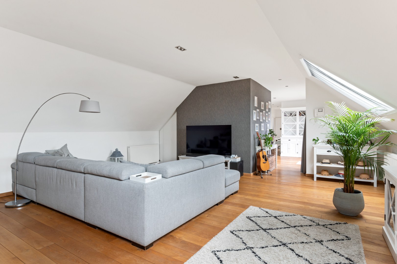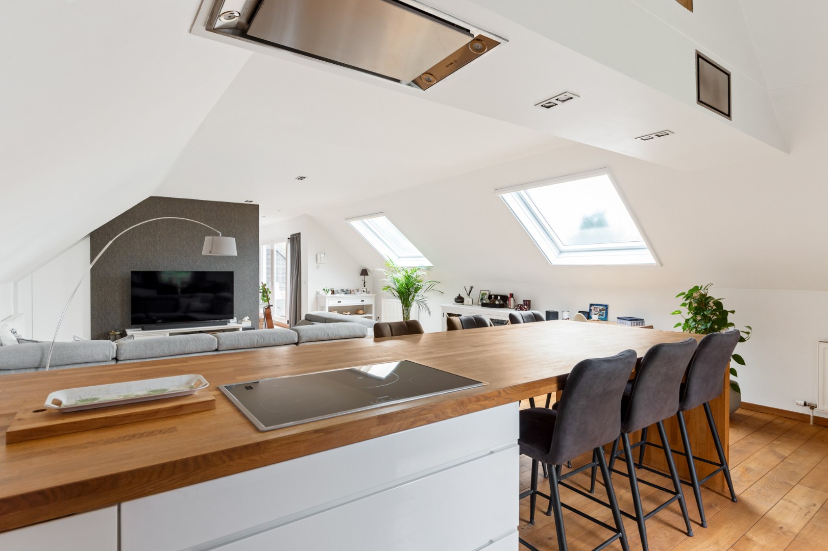 Het unieke appartement combineert modern comfort met een stijlvolle afwerking en verwelkomt u via een ruime inkomhal, voorzien van een gastentoilet en ingemaakte vestiairekasten. De hal leidt naar de royale leefruimte van +/- 50 m², afgewerkt met een elegante parketvloer en ramen die zorgen voor een overvloed aan natuurlijk licht. De open designkeuken is een ware eyecatcher en geheel uitgerust met hoogwaardige inbouwtoestellen, maatkasten en een groot eeteiland met plek voor zes Personen. Aangrenzend vindt u een praktische berging en een compact overdekt buitenterras. Centraal in het appartement geven grote schuiframen toegang tot het grote zuidwest georiënteerde terras, waar u kan genieten van een prachtig verzicht.