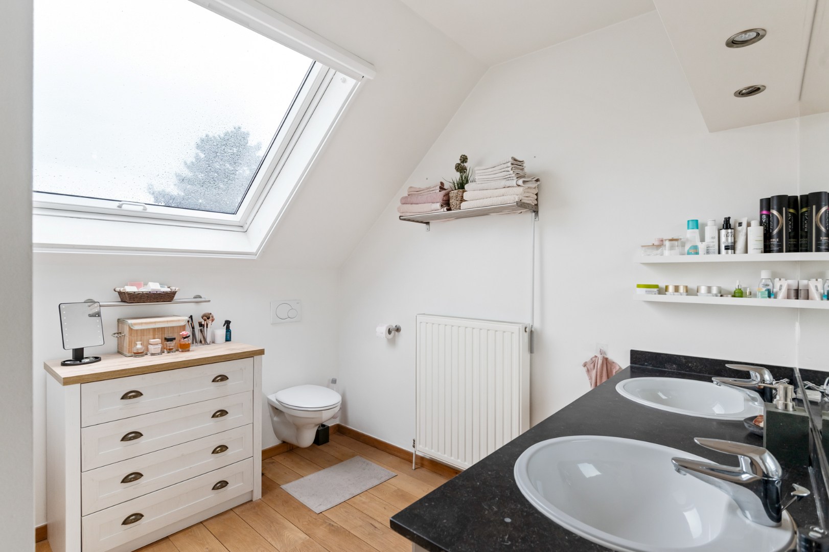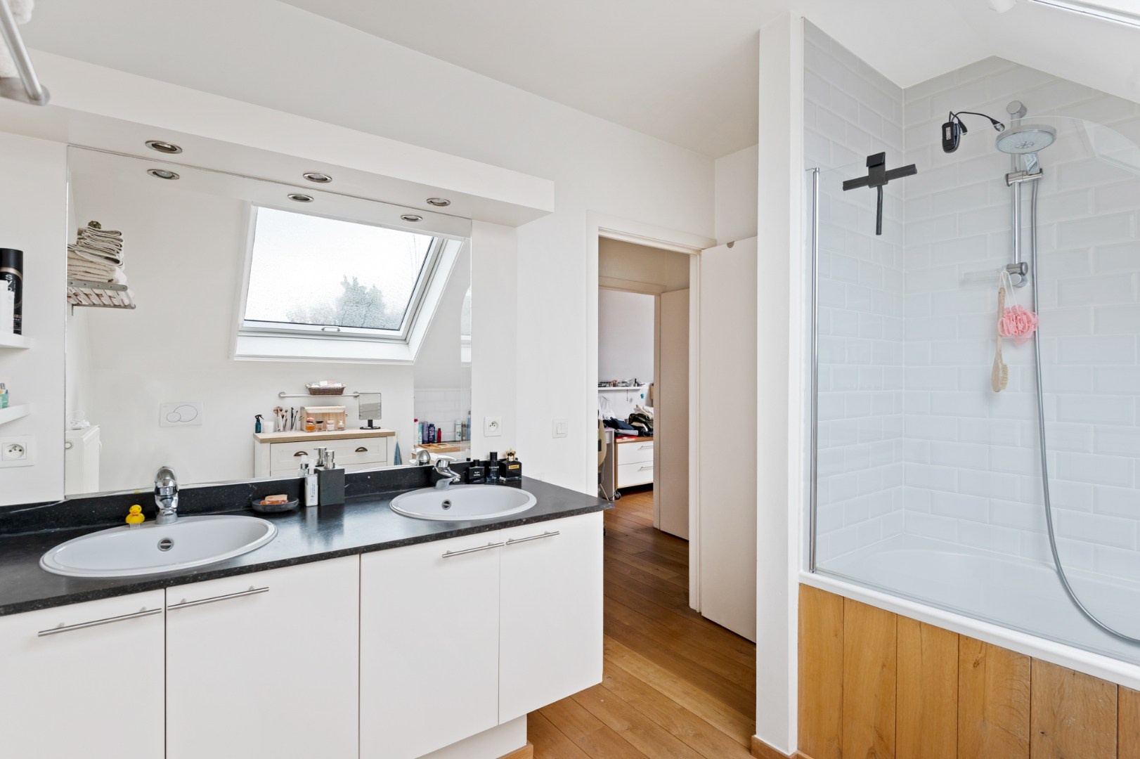 Daarnaast beschikt het appartement over twee comfortabele slaapkamers van respectievelijk 13 m² en 12 m², een praktische berging/waskamer en een smaakvol ingerichte badkamer met een ligbad, een dubbele wastafel en een tweede toilet.
