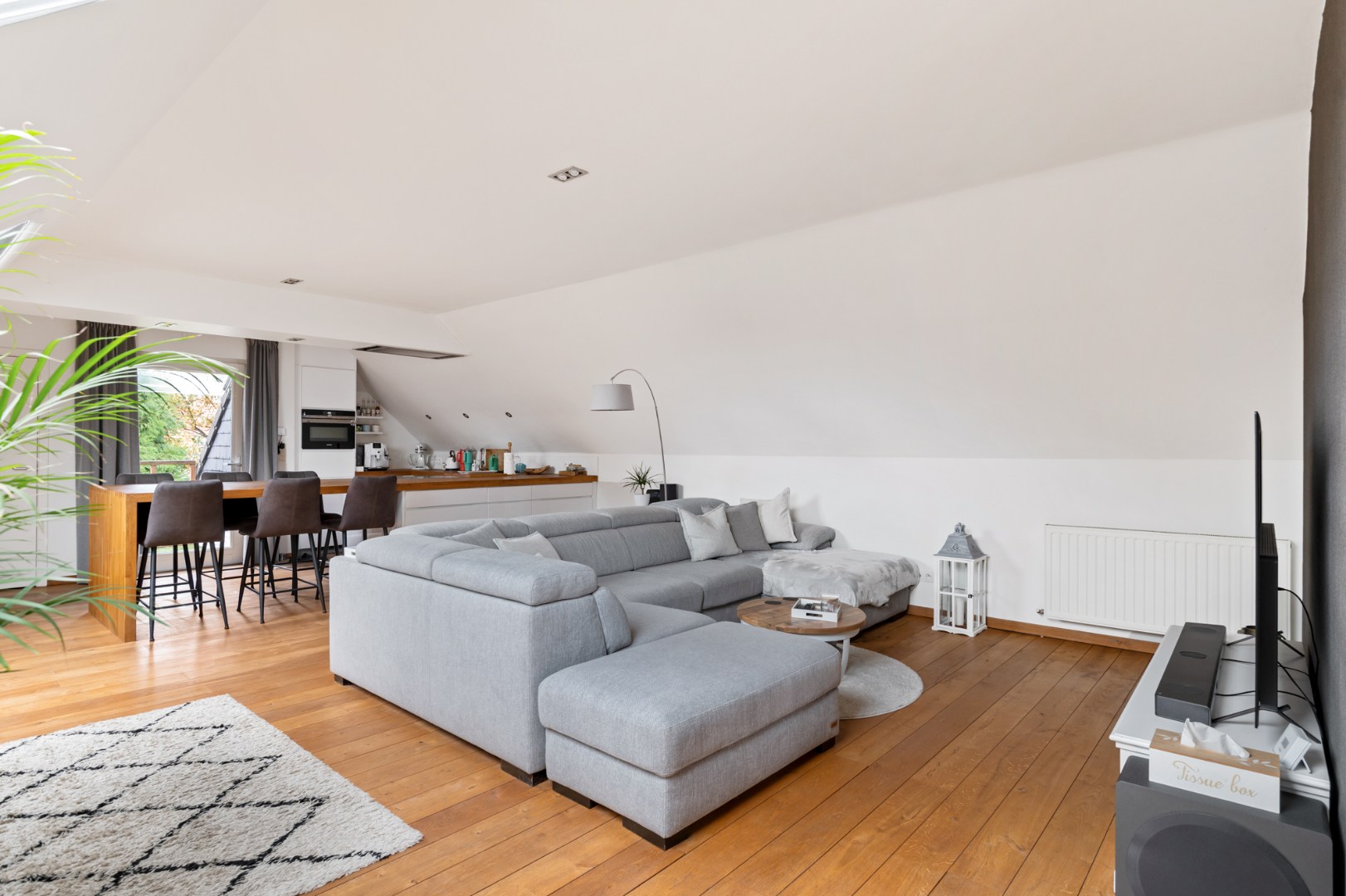 Dit schitterende penthouse is gevestigd in een stijlvol gerenoveerde graanschuur uit de jaren '40. Het karaktervolle, volledig vernieuwde gebouw is omgevormd tot drie luxe appartementen en biedt een ongeëvenaarde woonsfeer. Het gebouw is gelegen in een autoluwe fietsstraat, nabij het centrum van Kapellen. Hier geniet u van de serene omgeving, omgeven door groen en stilte.