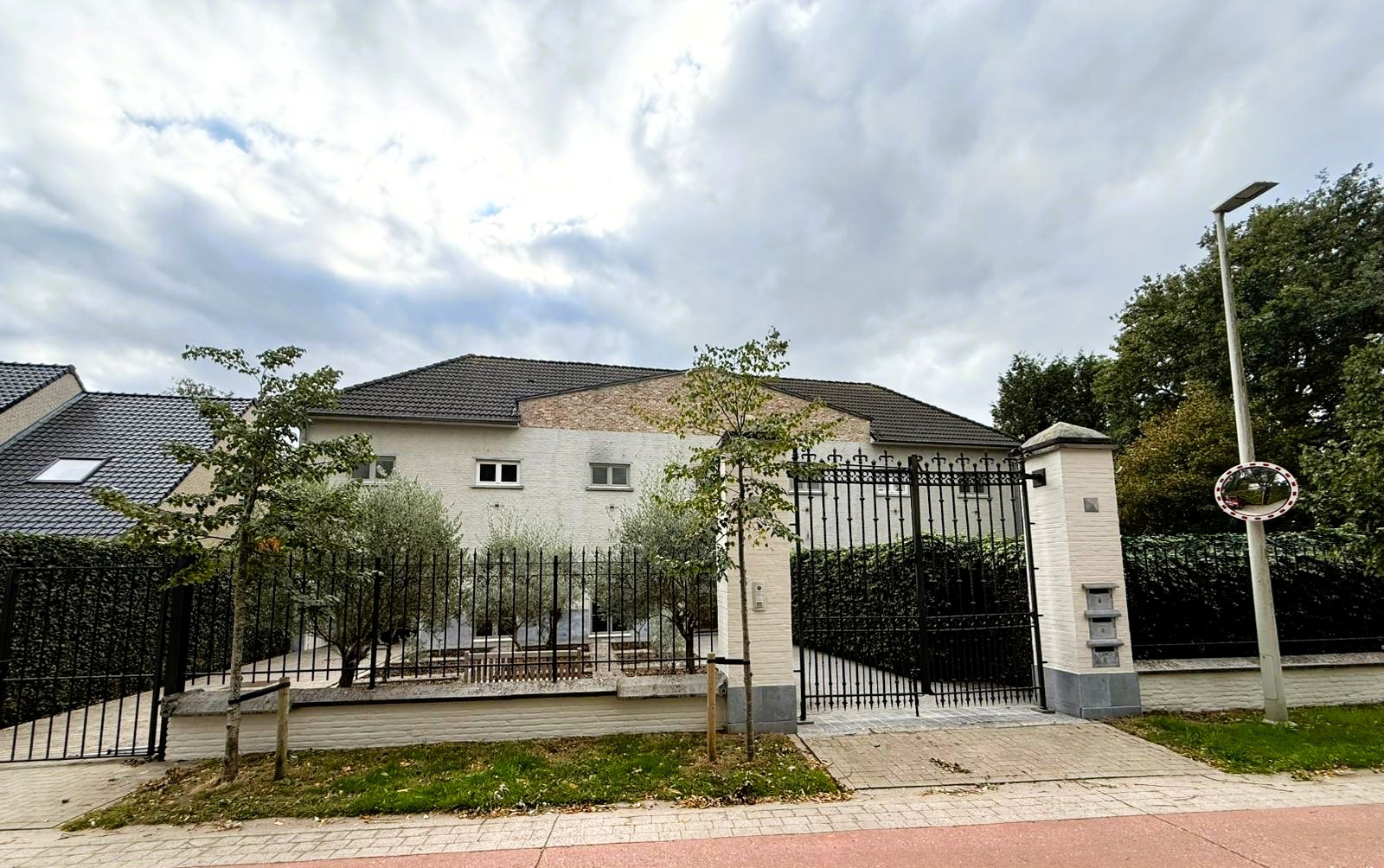 Bij binnenkomst via de smeedijzeren poort, wordt u verwelkomd door een fraai aangelegde voortuin en een indrukwekkend houten inkomportaal. Deze entree geeft al direct een warm en uitnodigend gevoel.