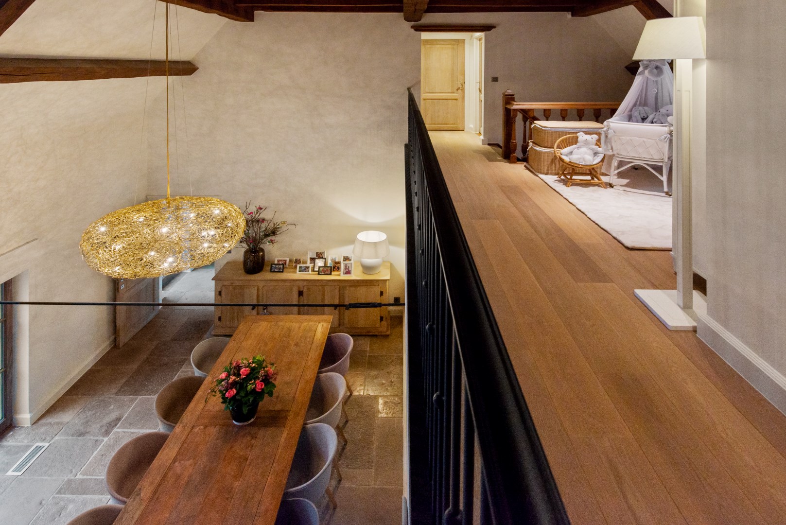 Deze uiterst kwalitatieve villa waarin authentieke elementen en modern comfort een mooie combinatie vormen omvat volgende indeling: