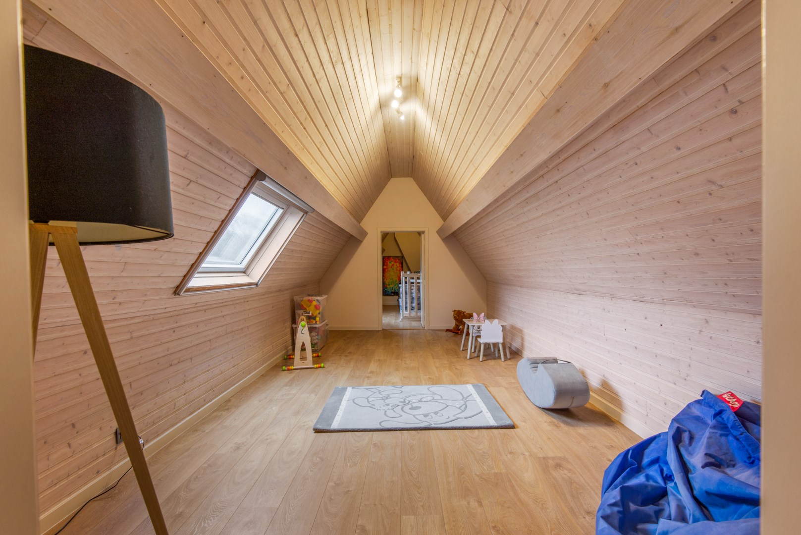 De 2de verdieping omvat een slaapkamer, speel/hobbykamer en berging.