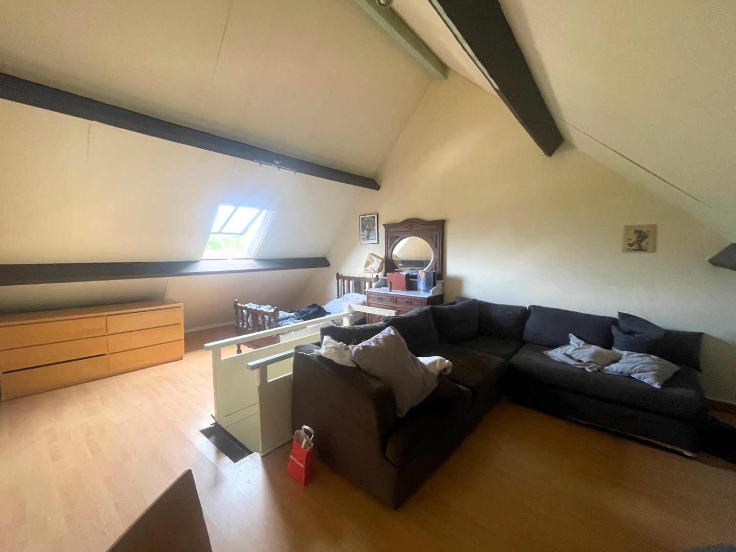 Een vaste trap brengt ons tot de 2de verdieping waar we een ingerichte slaapkamer van 36m² vinden.