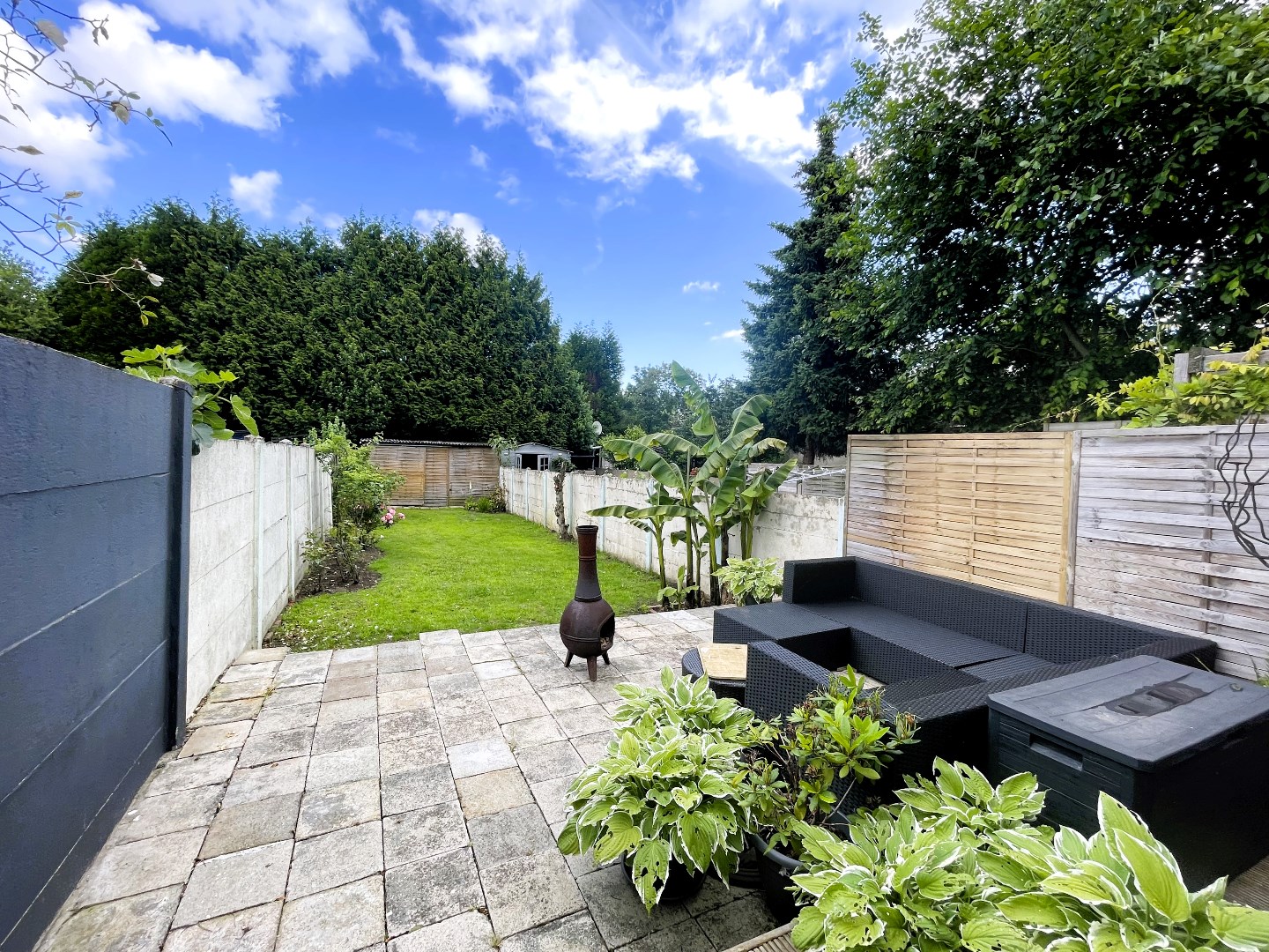De zonnige tuin achteraan biedt een oase van rust en privacy en is voorzien van een overdekt loungeterras.