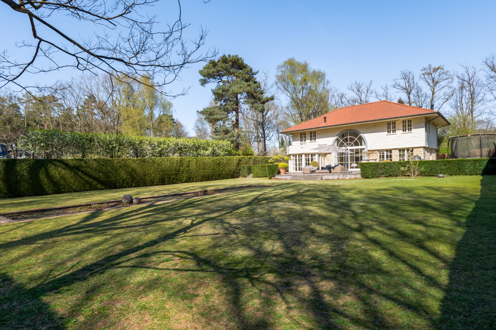 De volledig omheinde tuin is voorzien van een zeer ruim zonneterras en vijver, waar u in alle privacy kan genieten van alle rust en een groen uitzicht op het achtergelegen bos. Mogelijkheid tot zwembad.