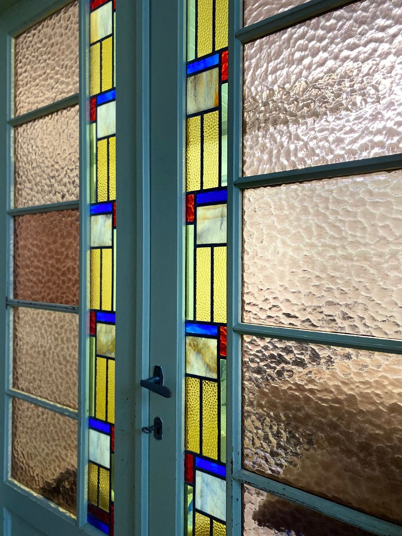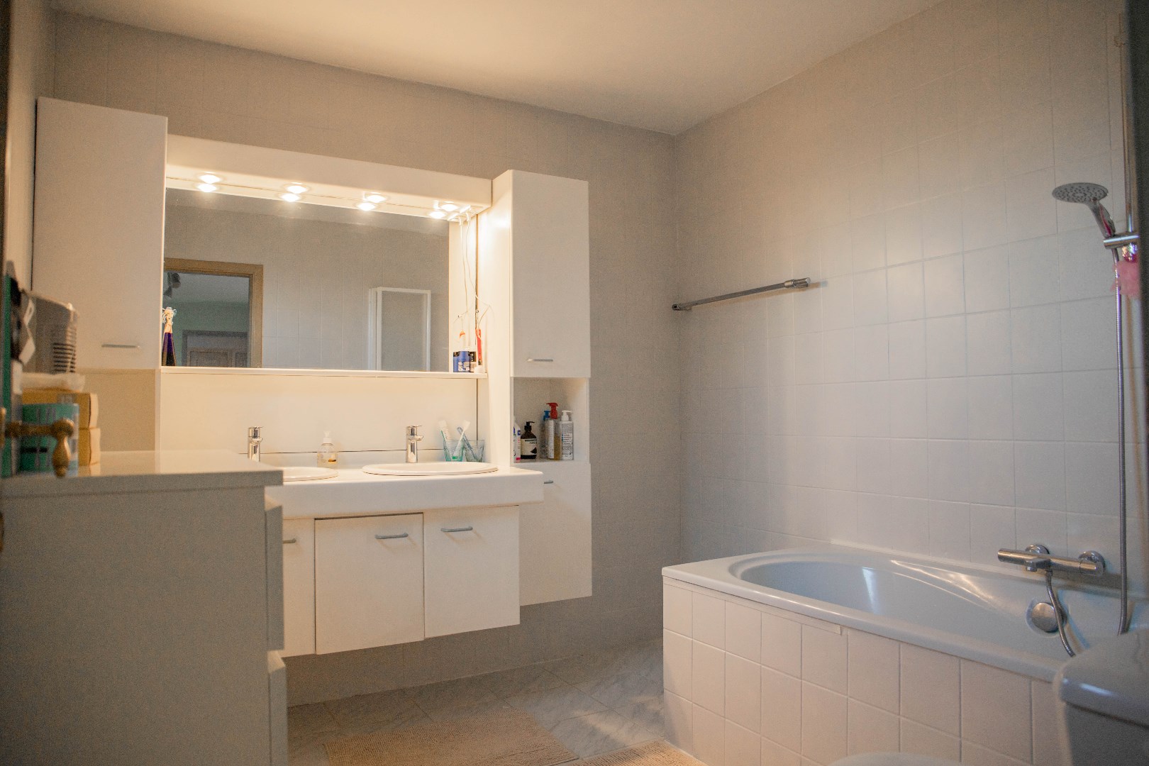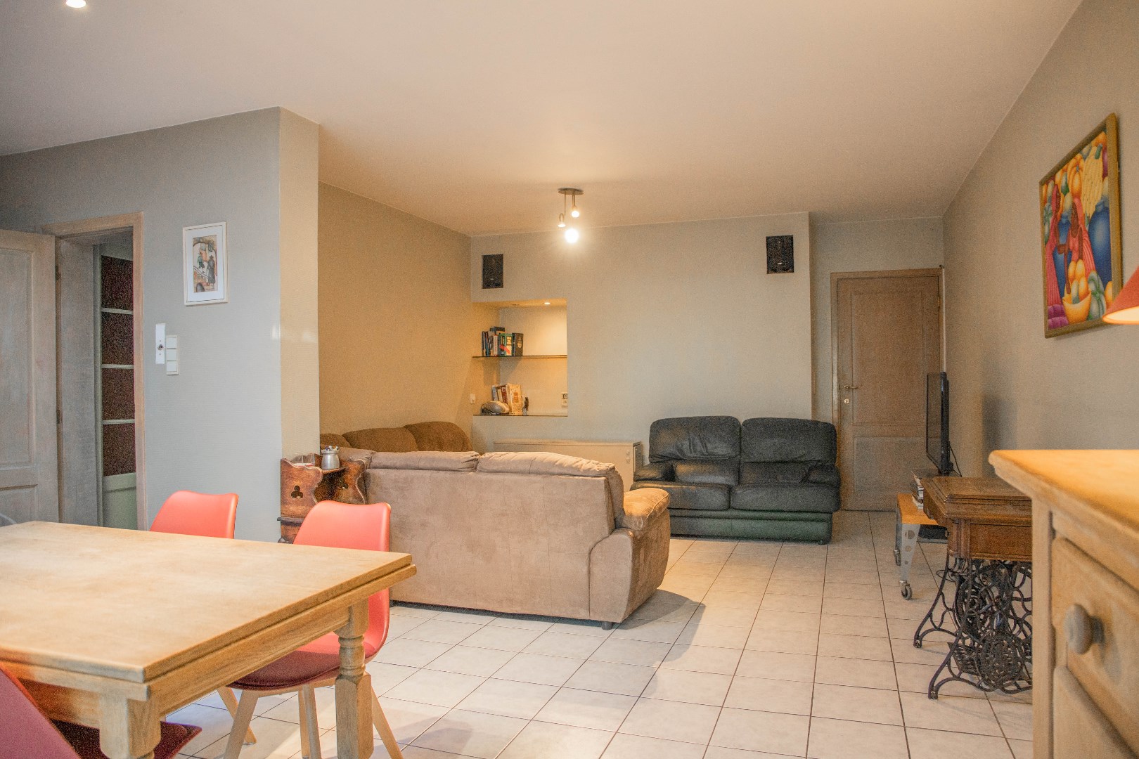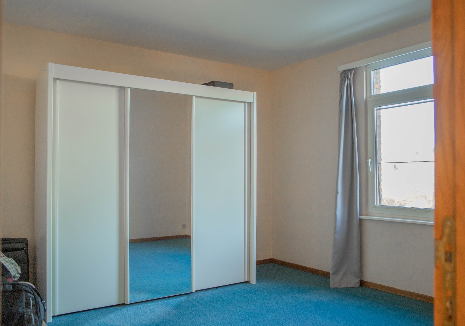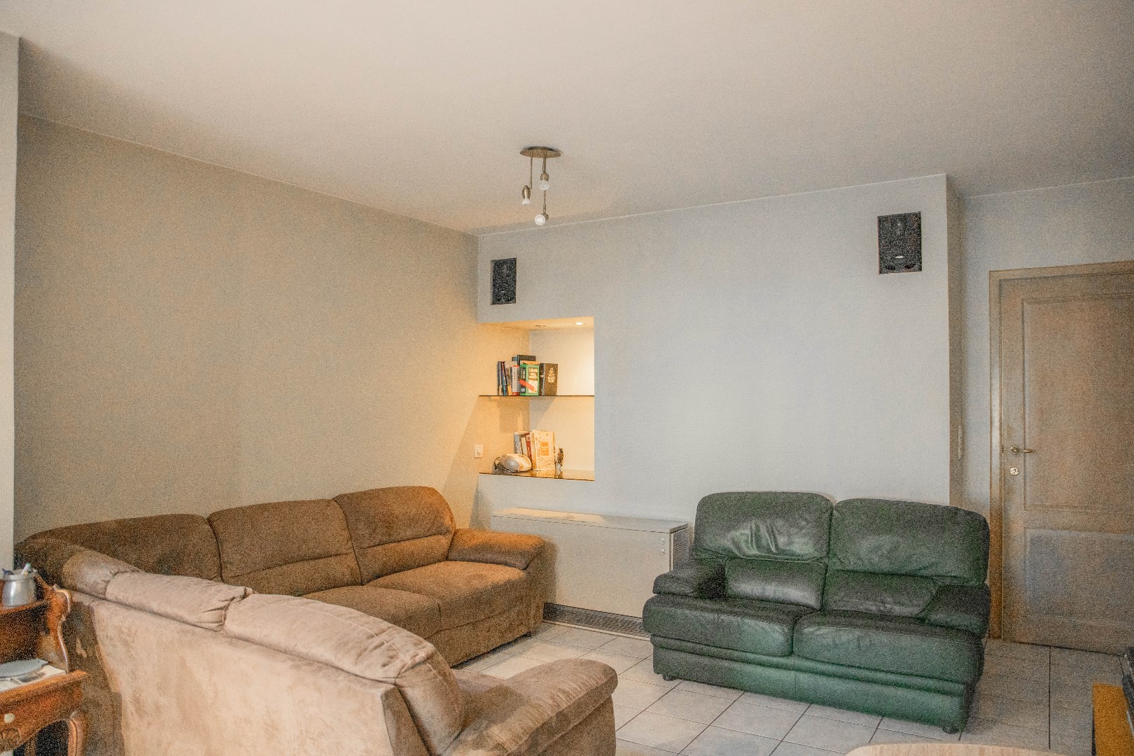 Via de inkomhal op mozaïekvloer komt u de woning binnen. De deuren met glas in lood springen hierbij direct in het oog en geven toegang tot de inpandige garage, die ruimte biedt voor een kleine wagen of fietsen. We gaan verder naar achter en komen zo in de ruime leefruimte. De ruime keuken – met voldoende kasten en toestellen – sluit hierbij mooi aan. Zowel vanuit de leefruimte als de keuken is er toegang tot de veranda. De badkamer is ingericht met een ligbad, lavabomeubel en toilet. Achter de badkamer is er een berging/wasplaats, enkel bereikbaar via de tuin.