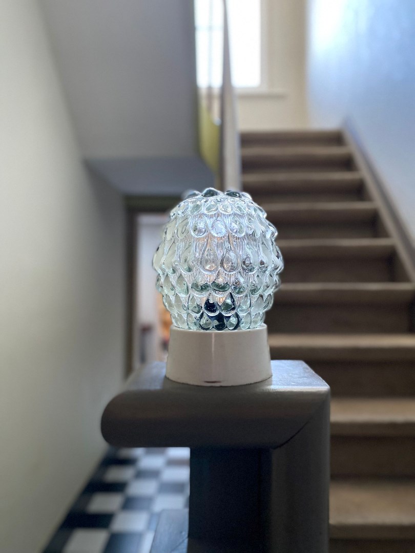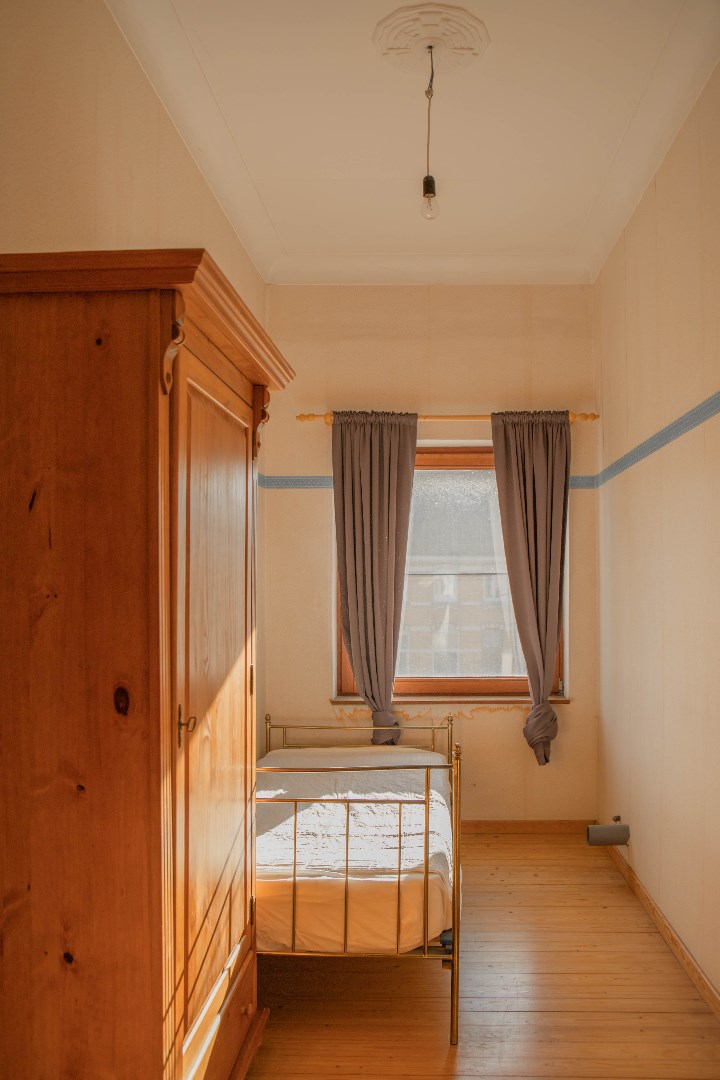 Via de trap komen we bij de nachthal op de eerste verdieping. Hier zijn er 3 slaapkamers, namelijk 1 aan de tuinkant en 2 aan de voorzijde, beiden met plankenvloer.
